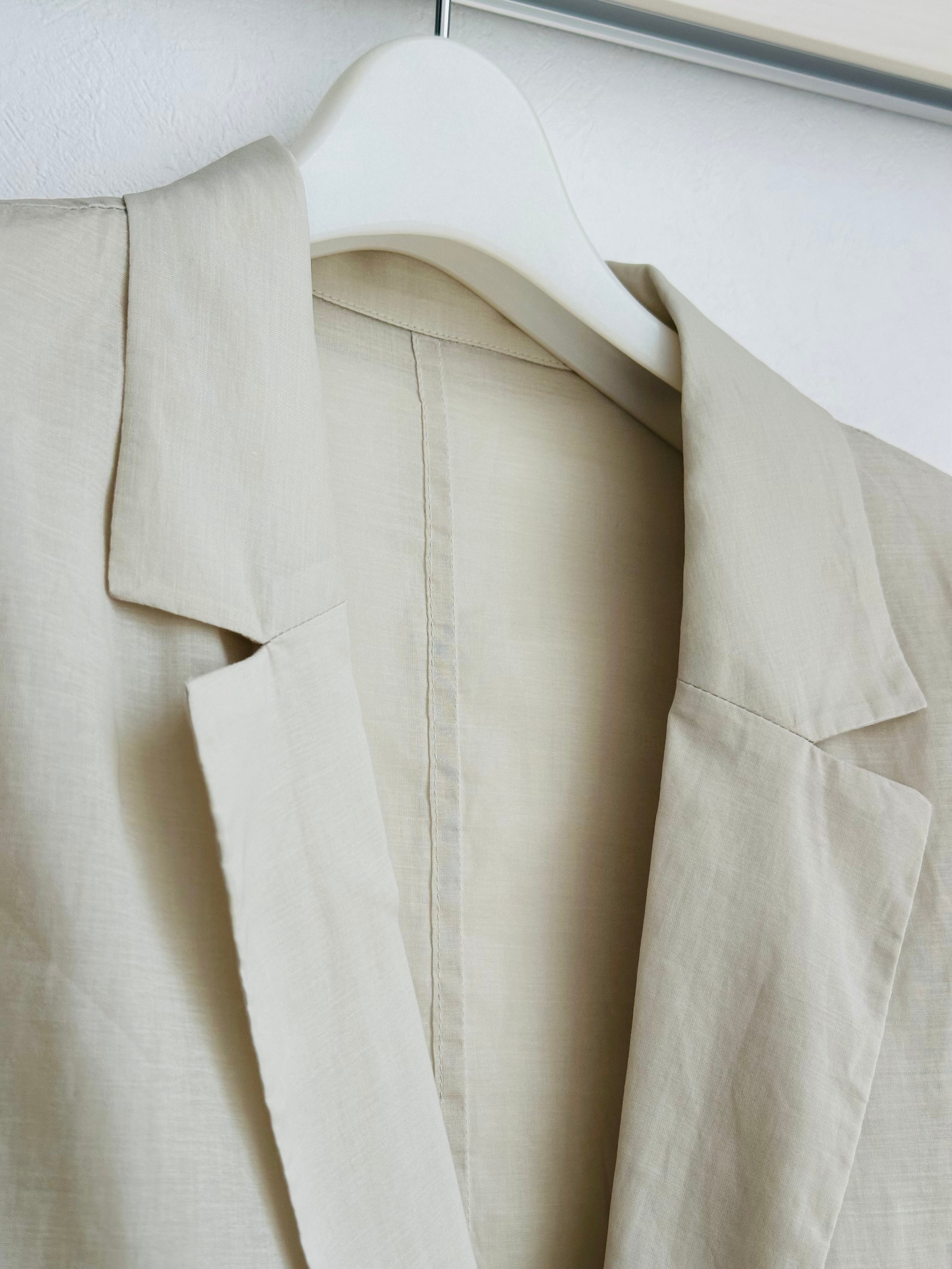 綿100素材にカレンダー加工を施した綺麗目生地は、カジュアル過ぎないデザインで羽織りにぴったりです。