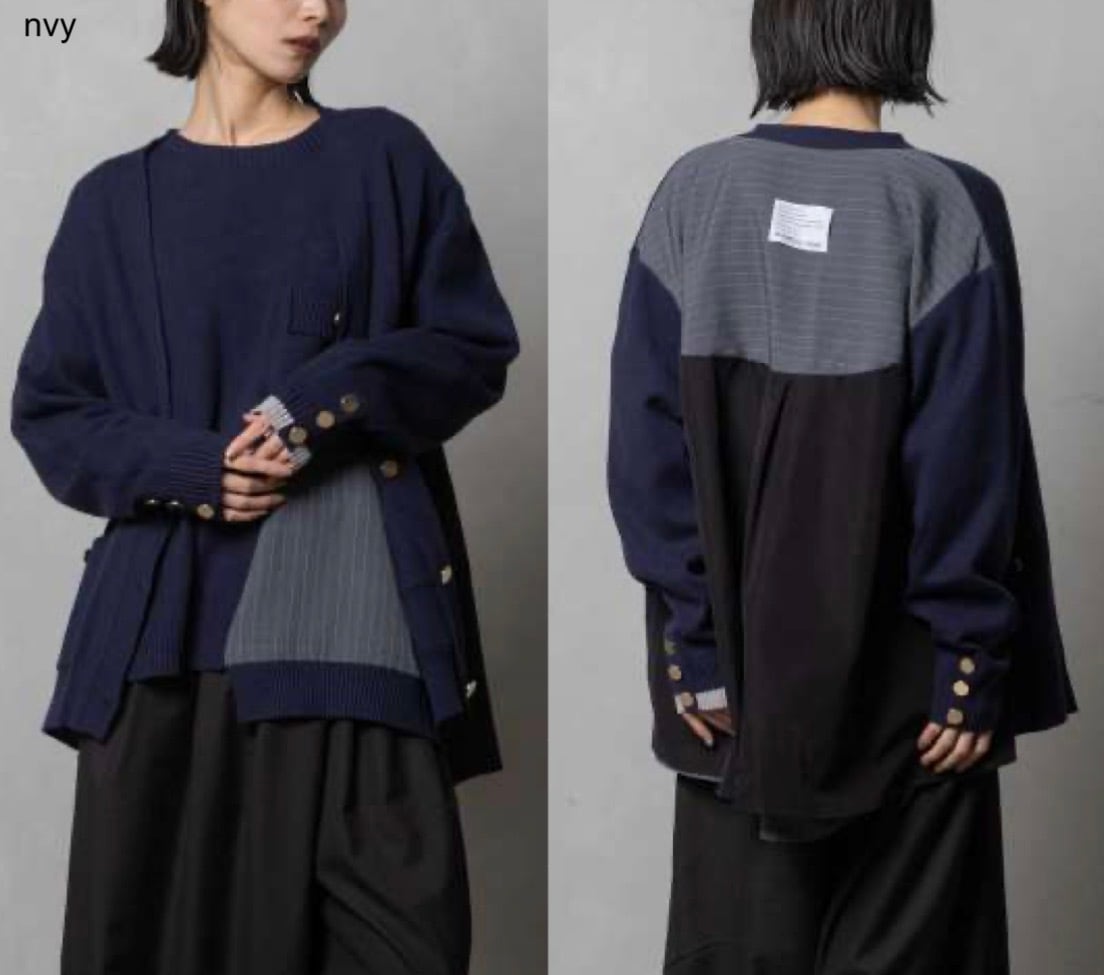 ニット✕布房をコンビネーションしたレイヤードニットプルオーバー