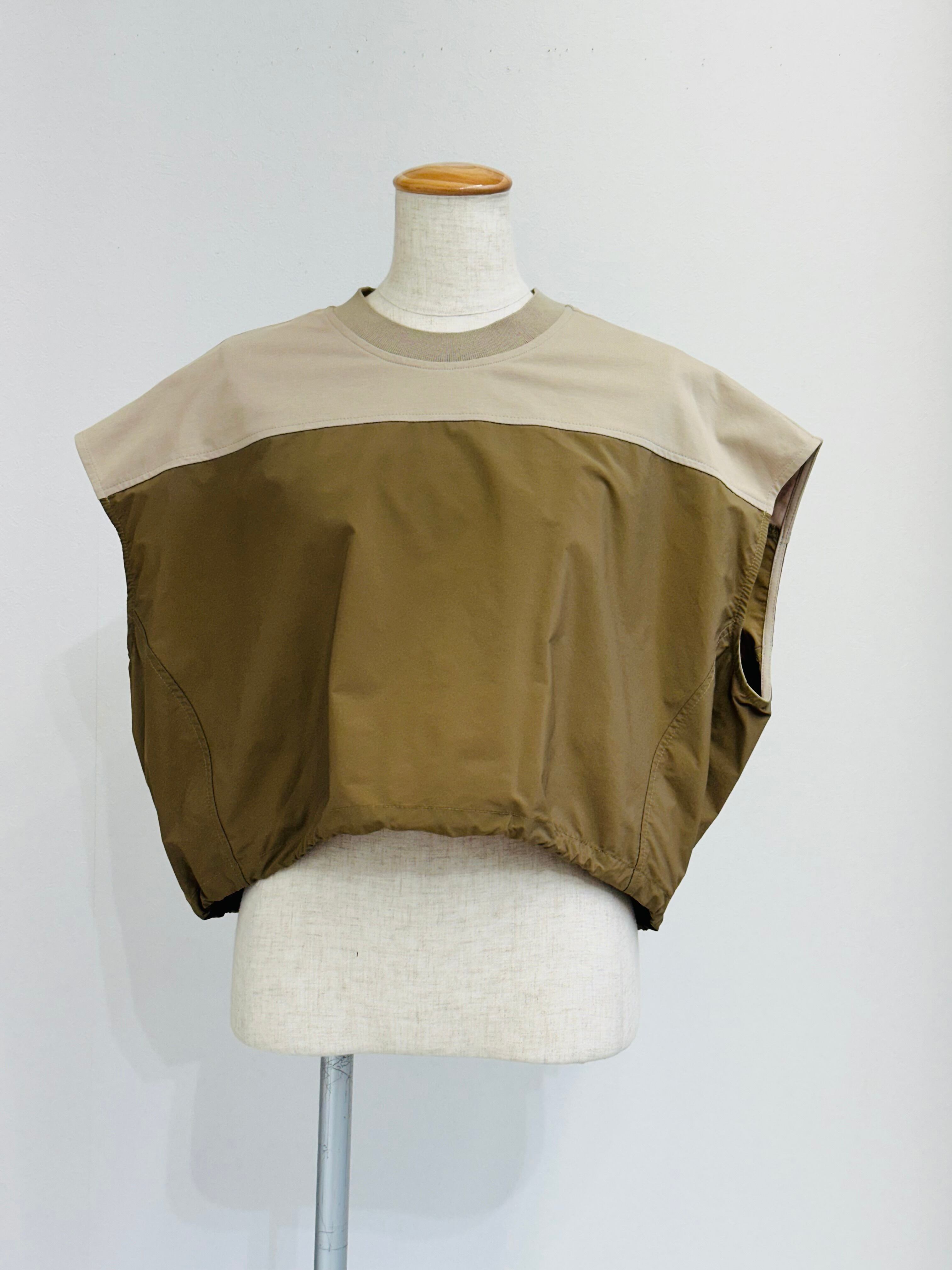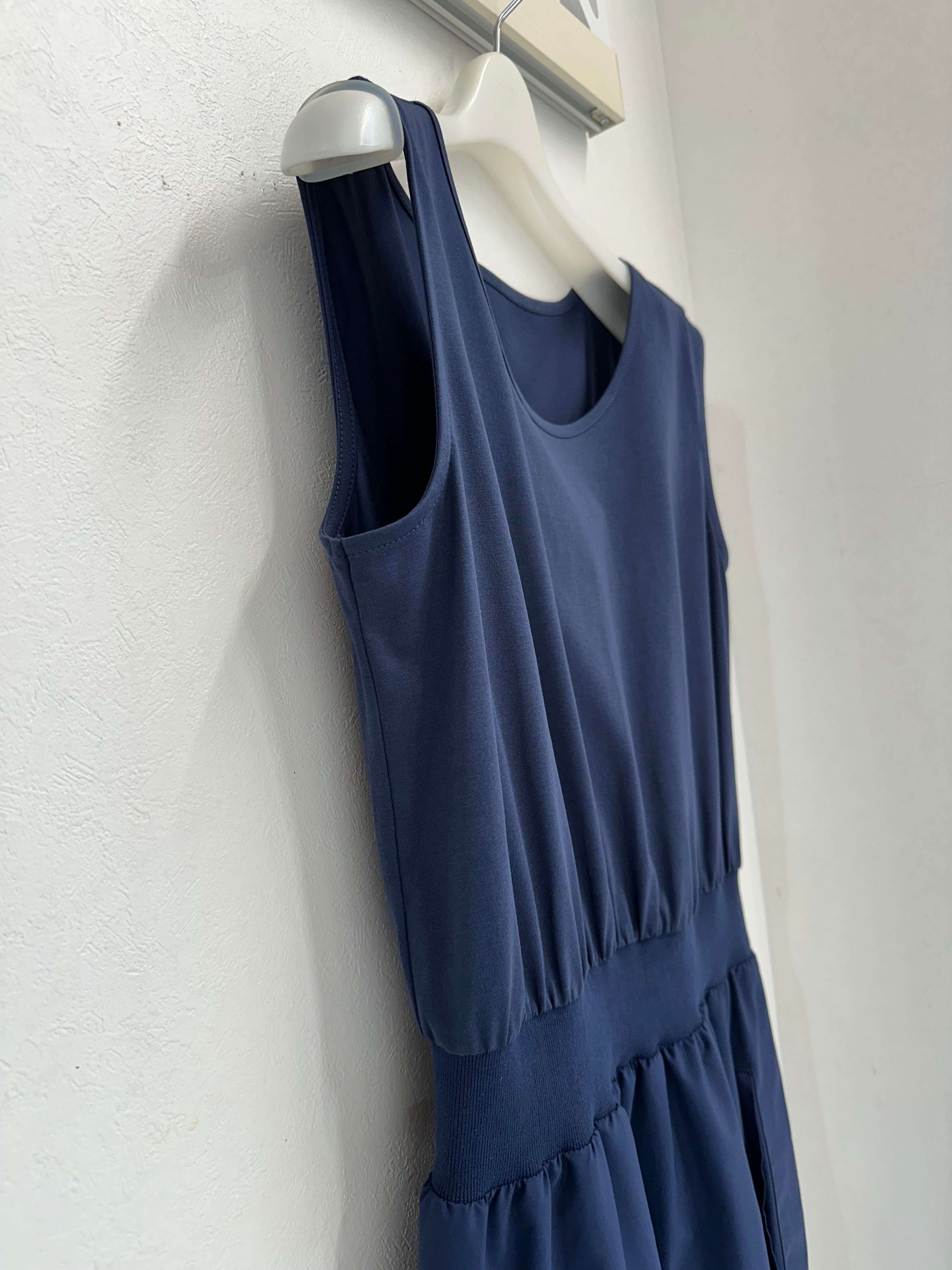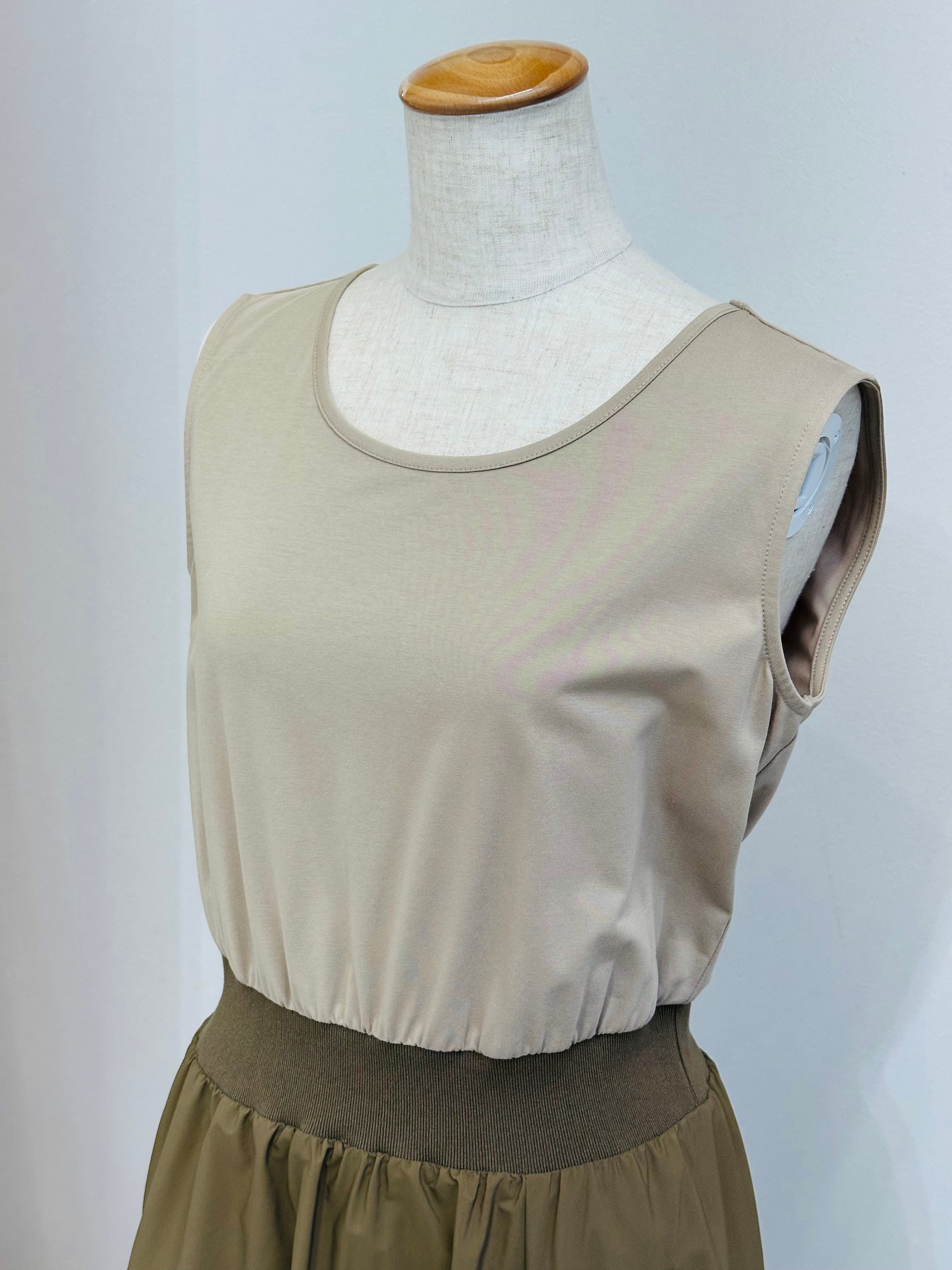 ショートトップスとノースリーブワンピースを組み合わせたアンサンブルワンピース。