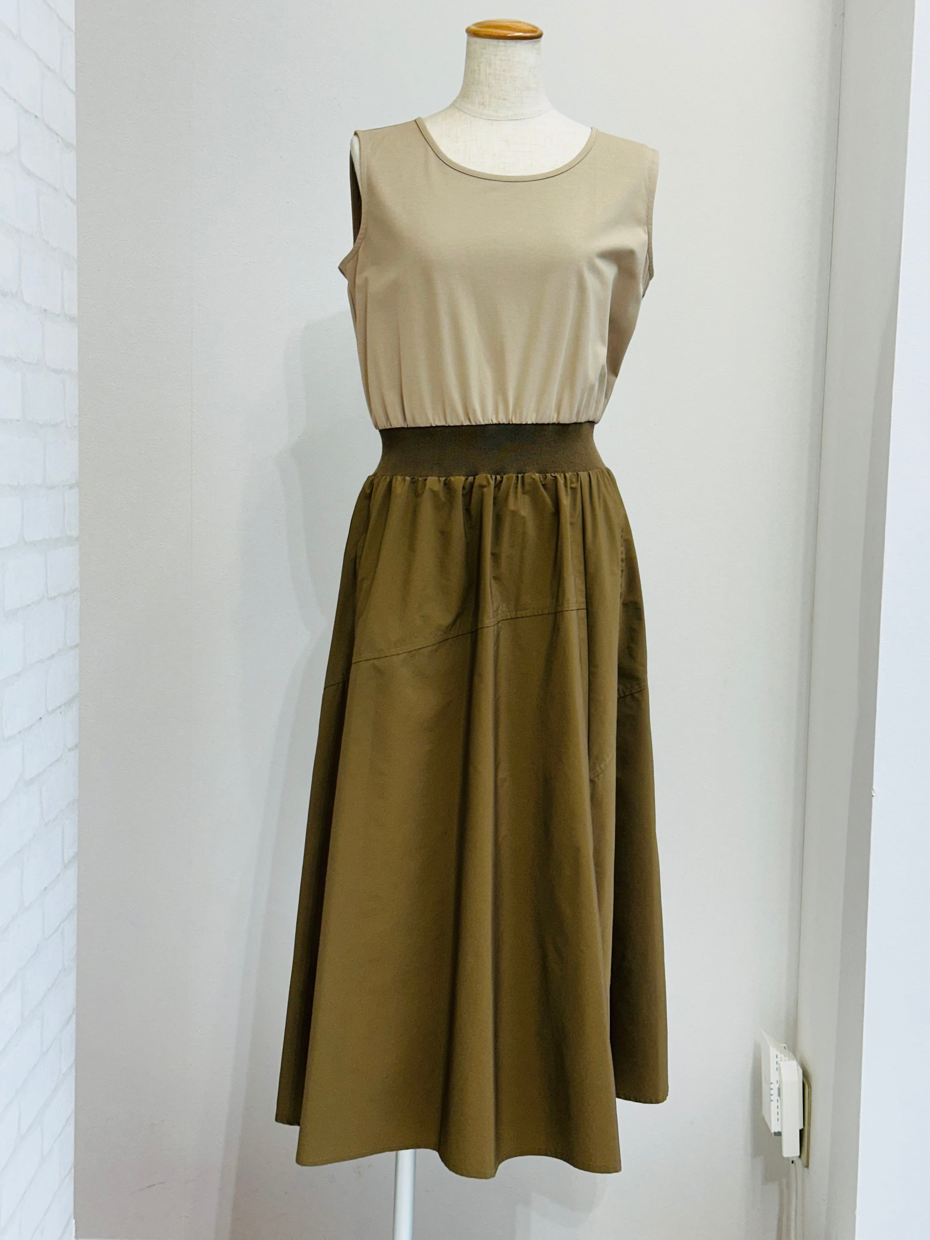 軽くハリのあるコットンナイロン素材で、シルエットを美しくキープしつつ体型も自然にカバー。