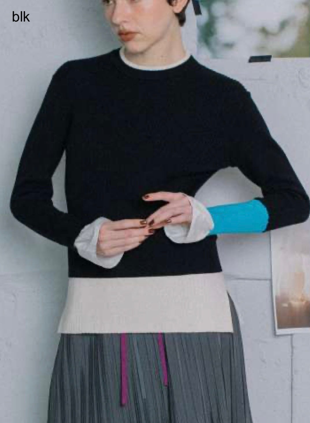 大人気の袖の配色がポイントのレイヤードデザインニットをアップデイト