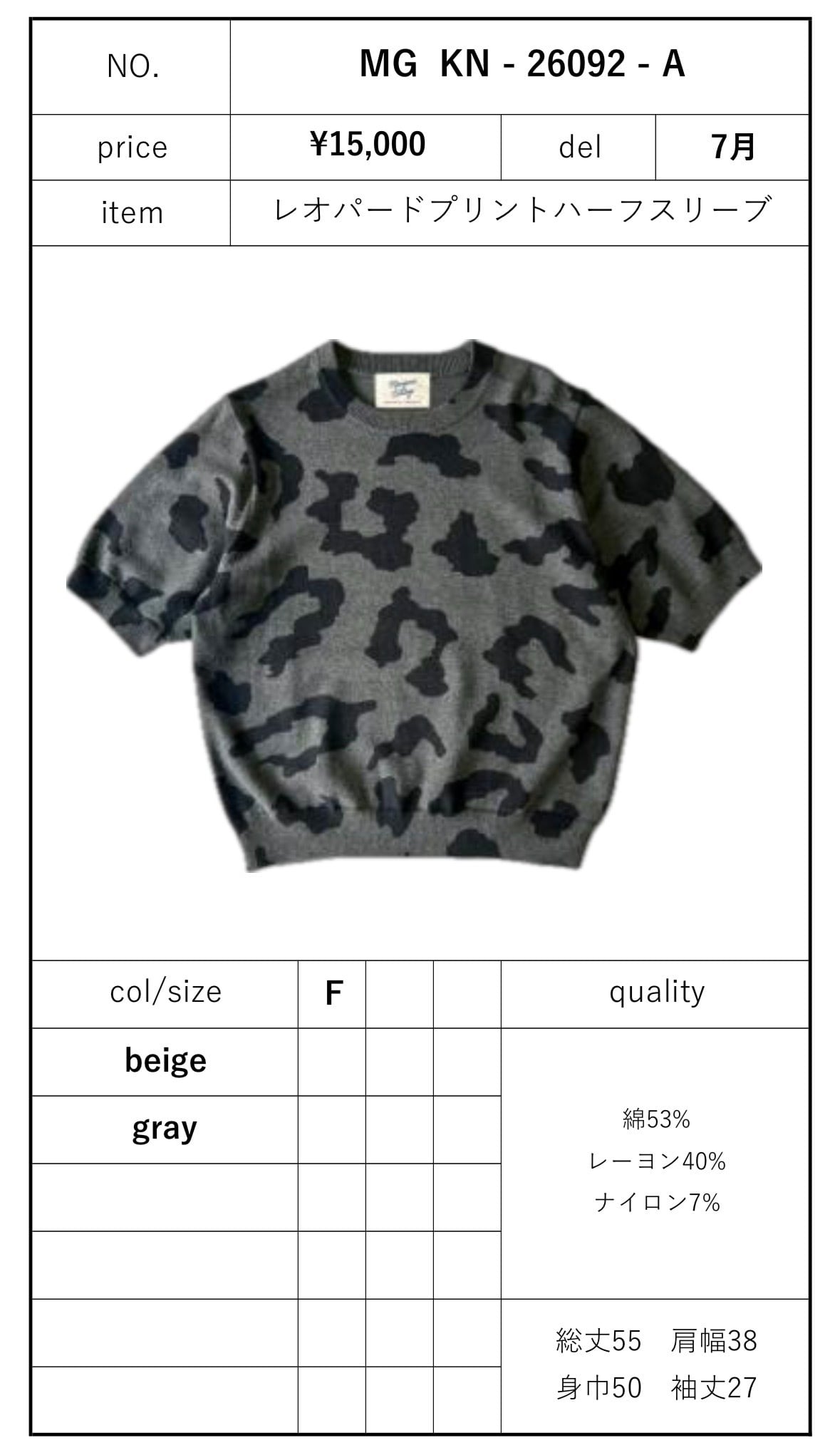 ◆特設ページでオトクご予約◆ 《マルゴー》 レオパードプリントハーフスリーブ margaux MG KN 26092 -A 2607c-008