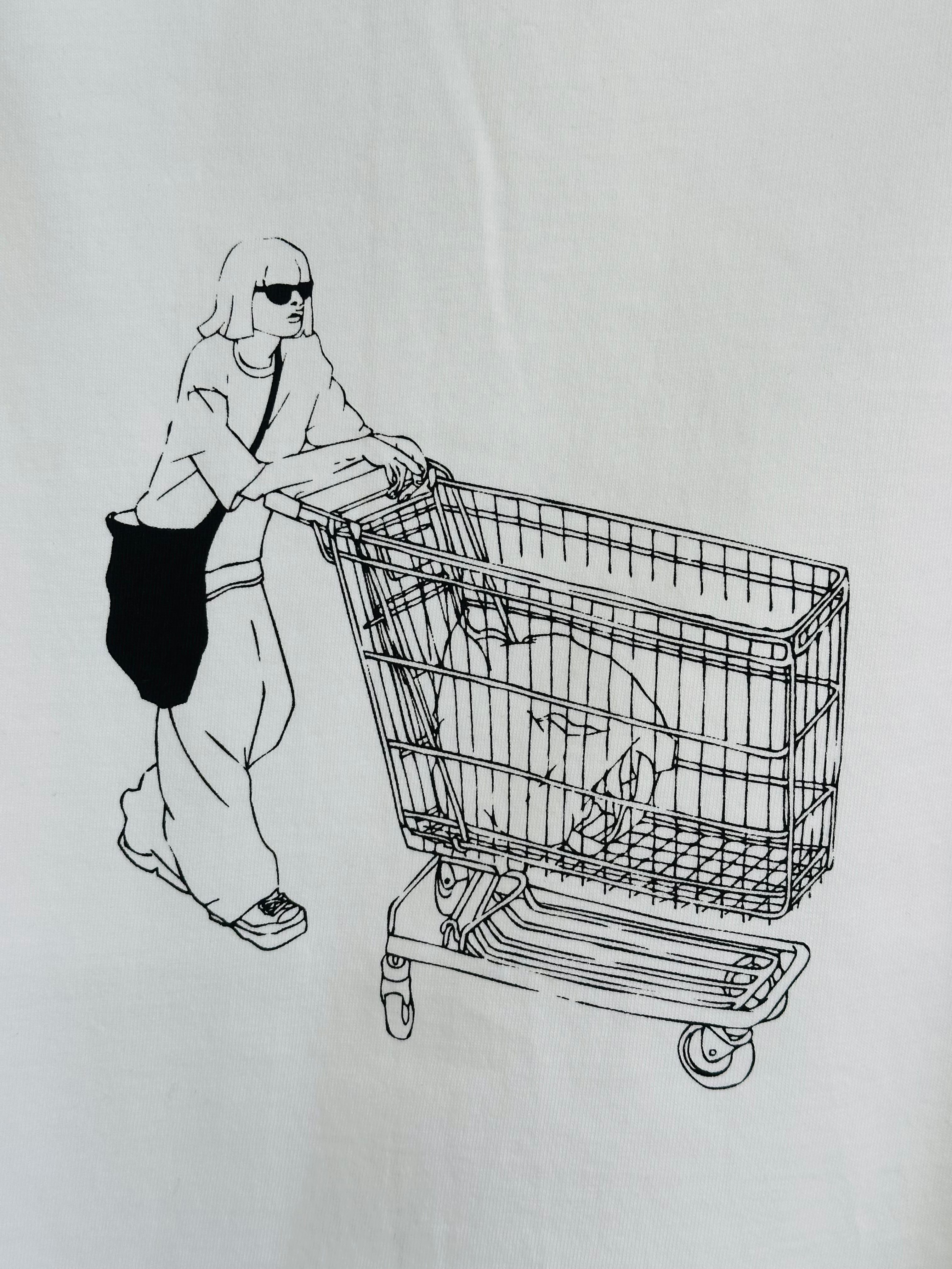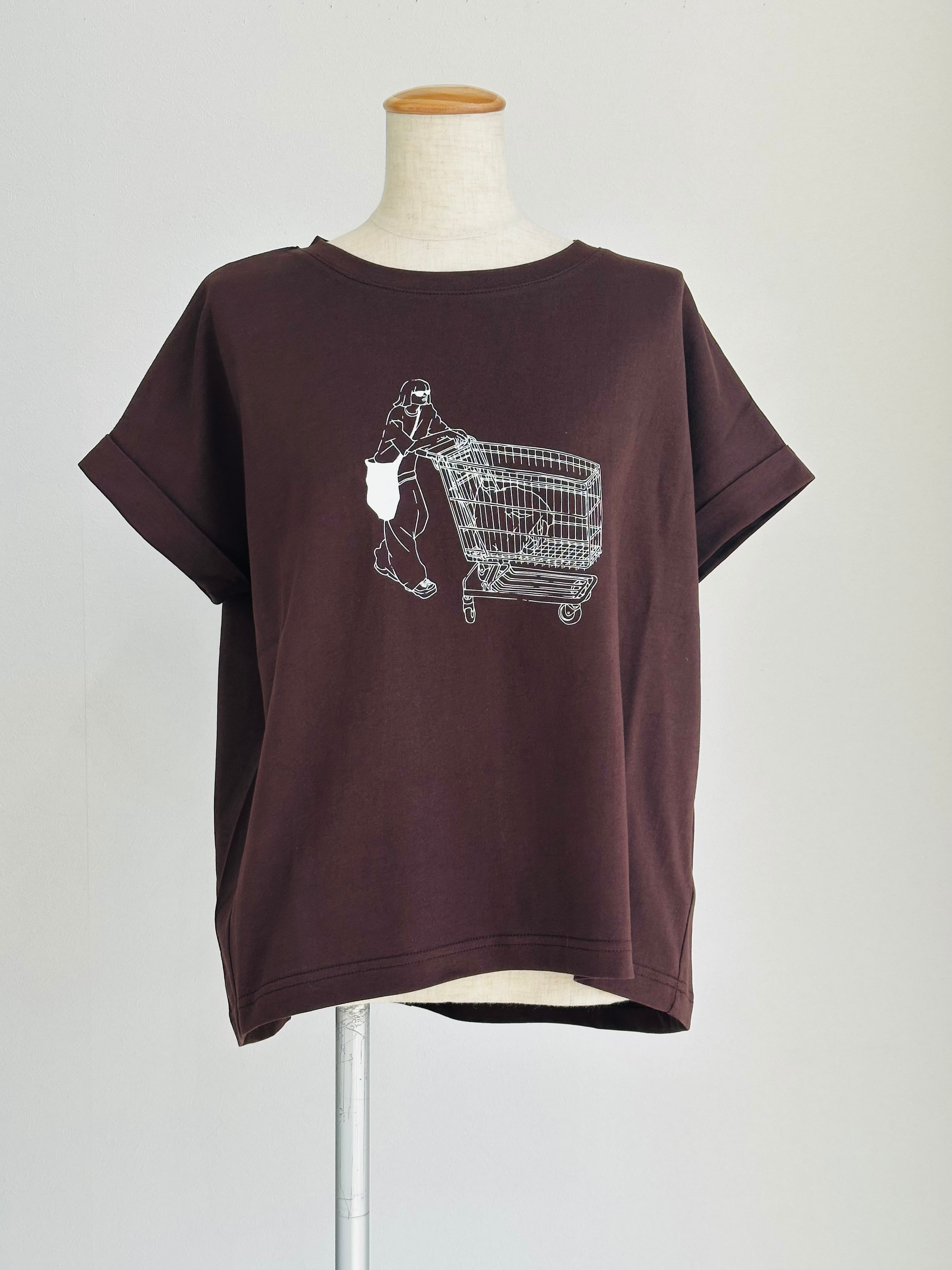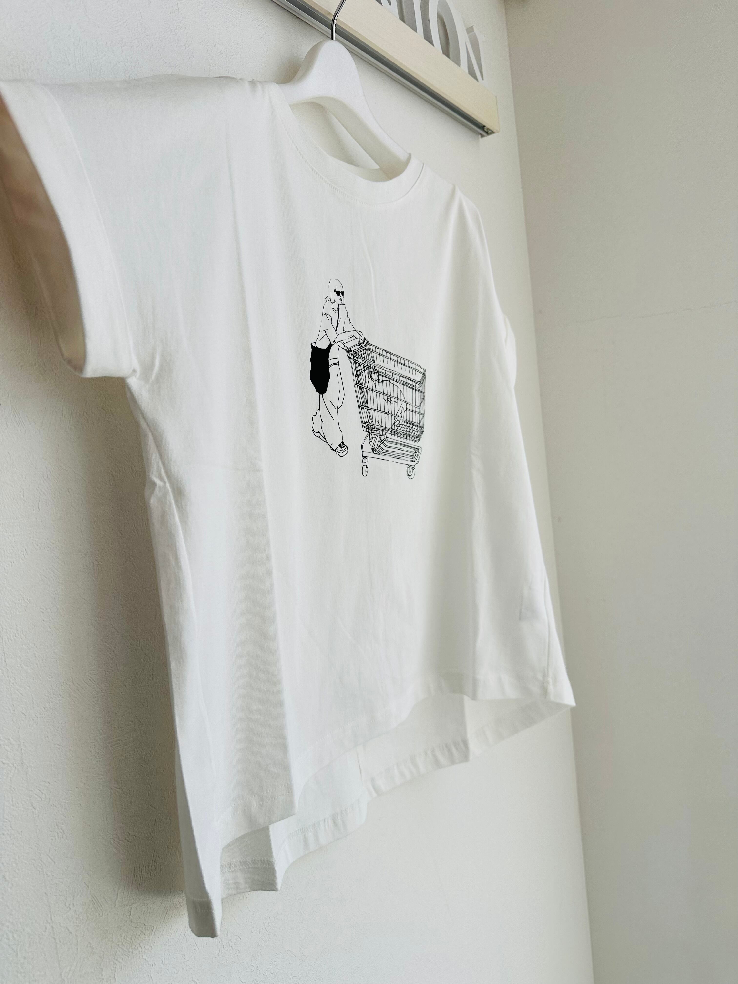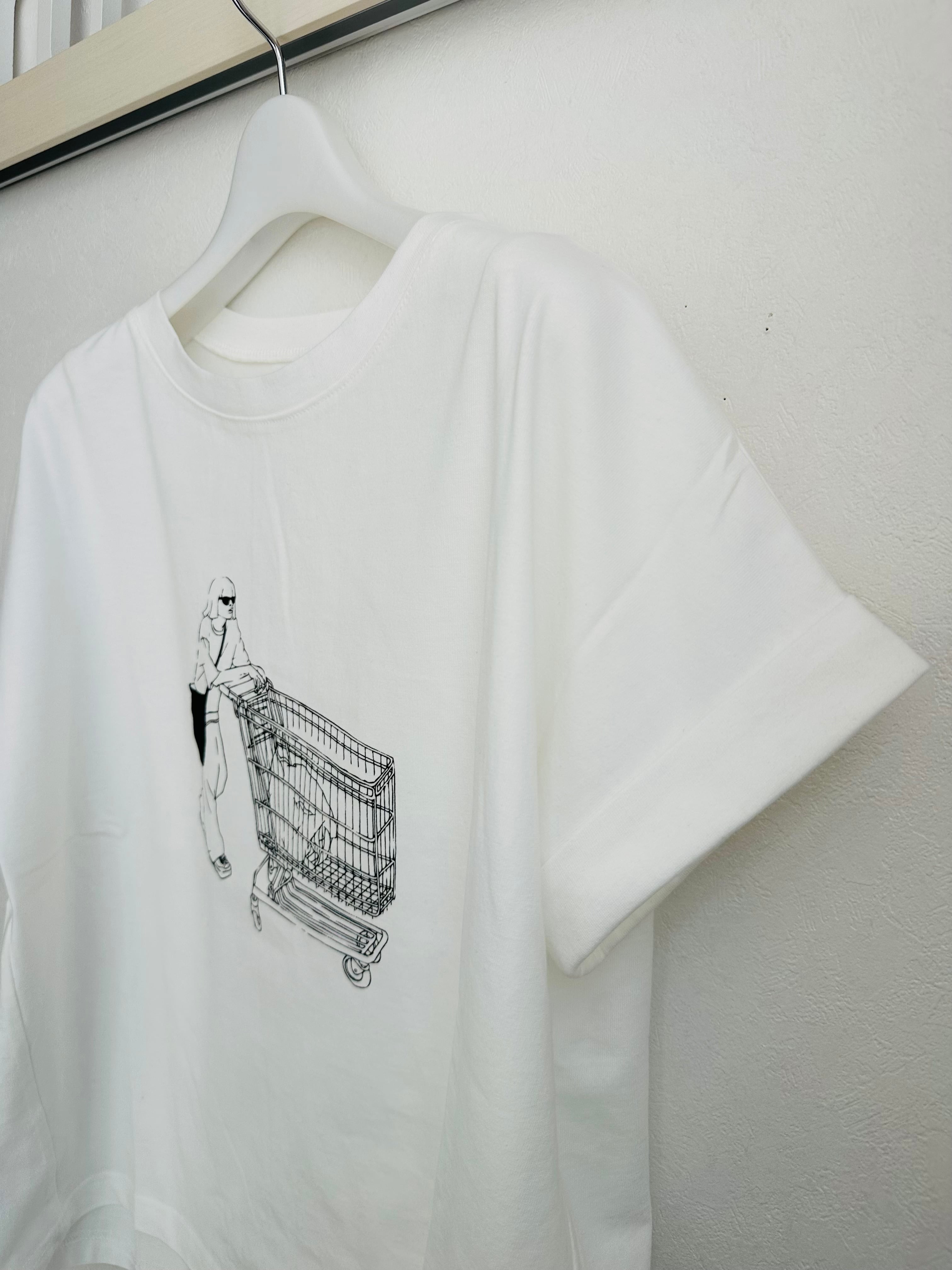 袖ロールアップイラストTシャツ