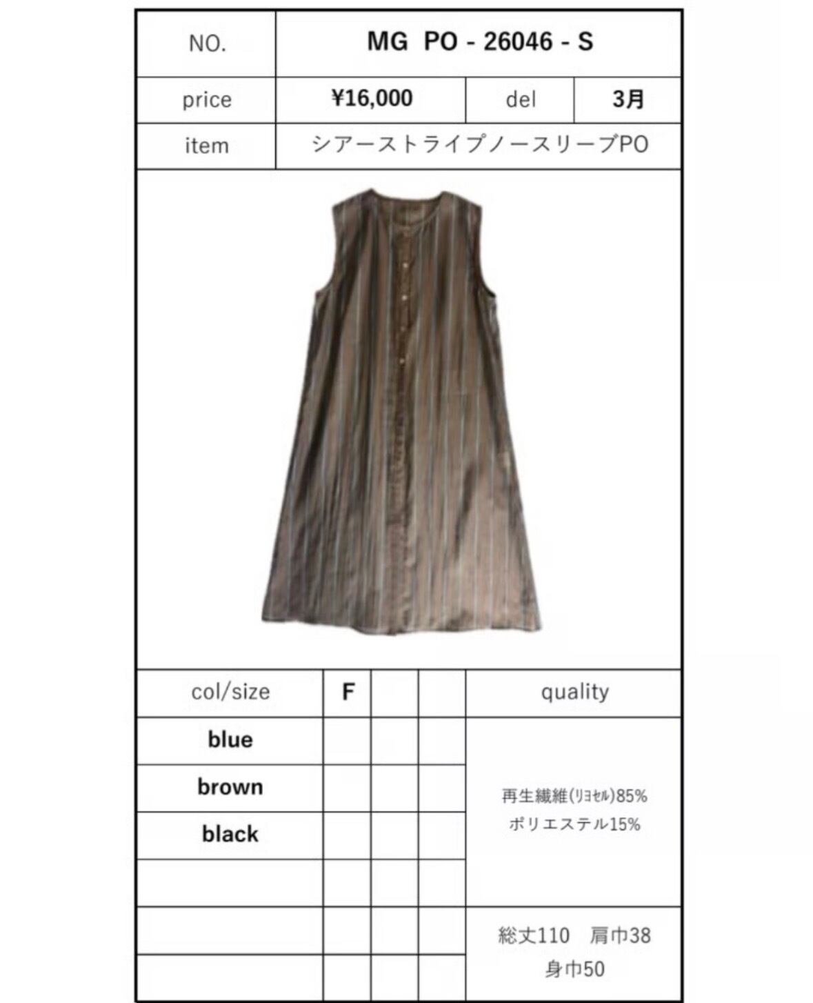 シアーストライプノースリーブPO