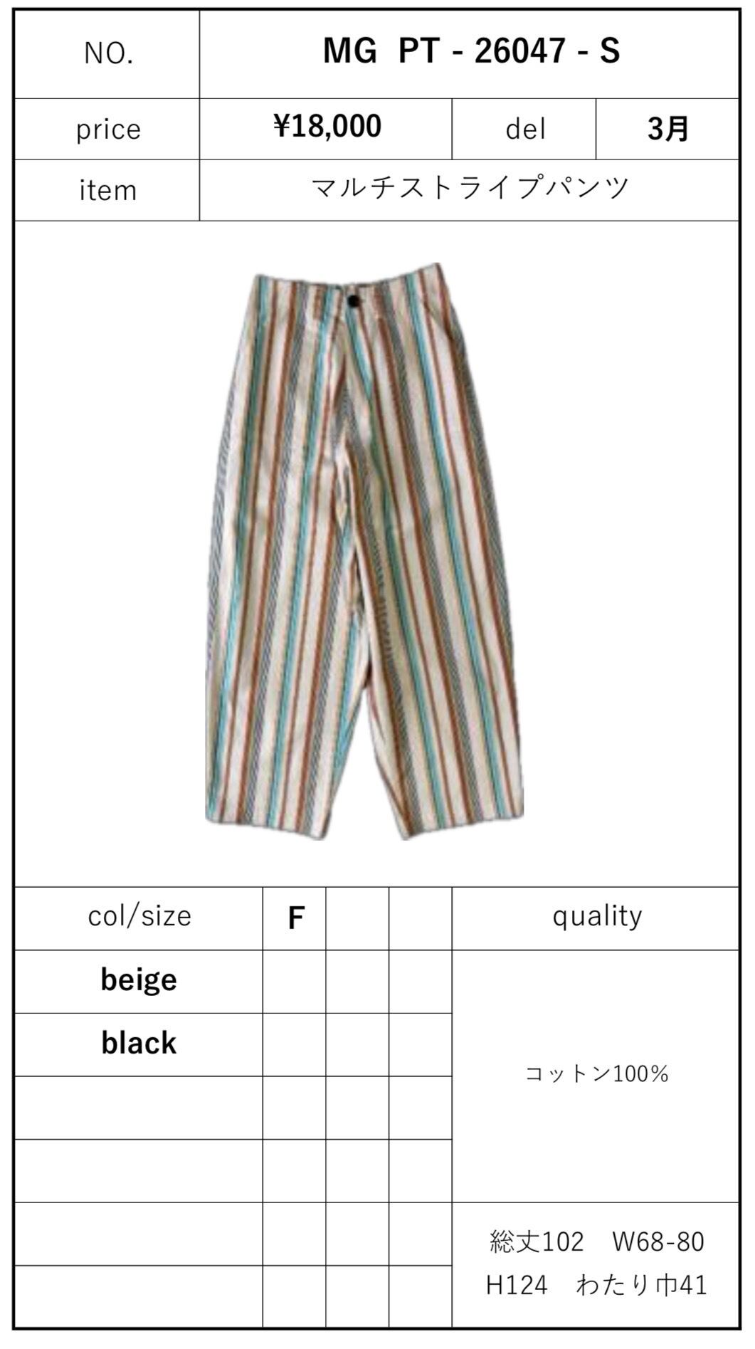 マルチストライプパンツ ❤︎MARGAUX 26夏 G/W POP-UP❤︎ MG PT - 26047 - S margaux 2605c-008