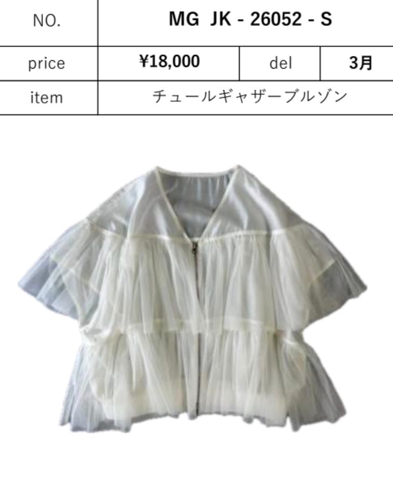 チュールギャザーブルゾン ❤︎MARGAUX 26夏 G/W POP-UP❤︎ MG JK - 26052 - S margaux 2605c-008