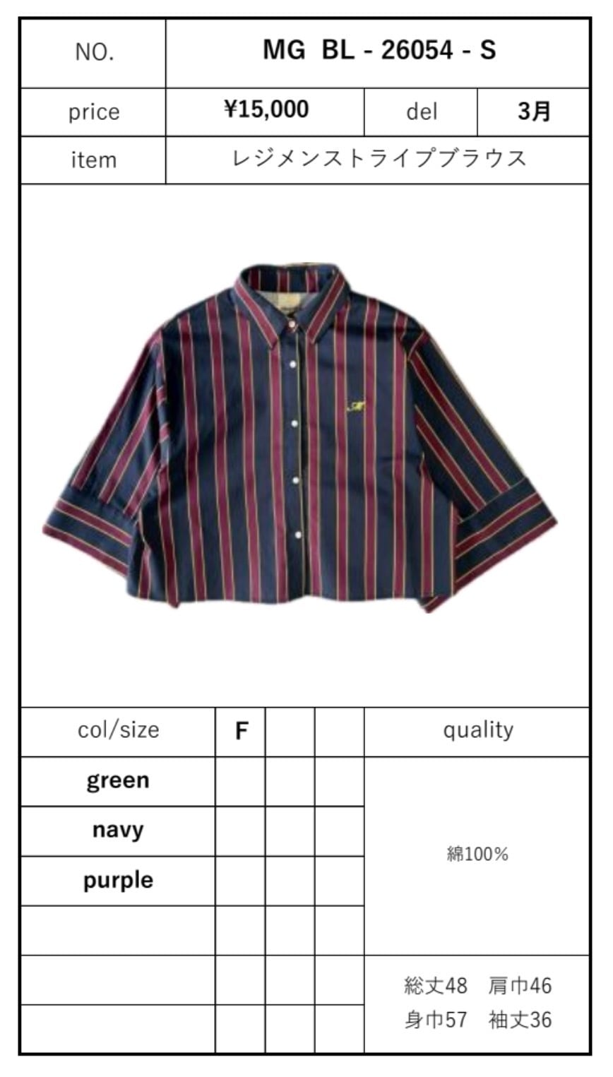 レジメンストライプブラウス ❤︎MARGAUX 26夏 G/W POP-UP❤︎ MG BL - 26054 - S margaux 2605c-008